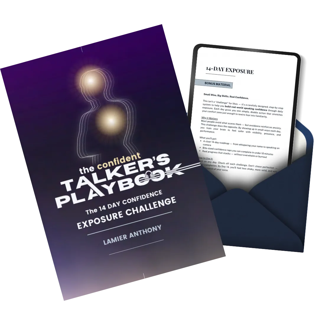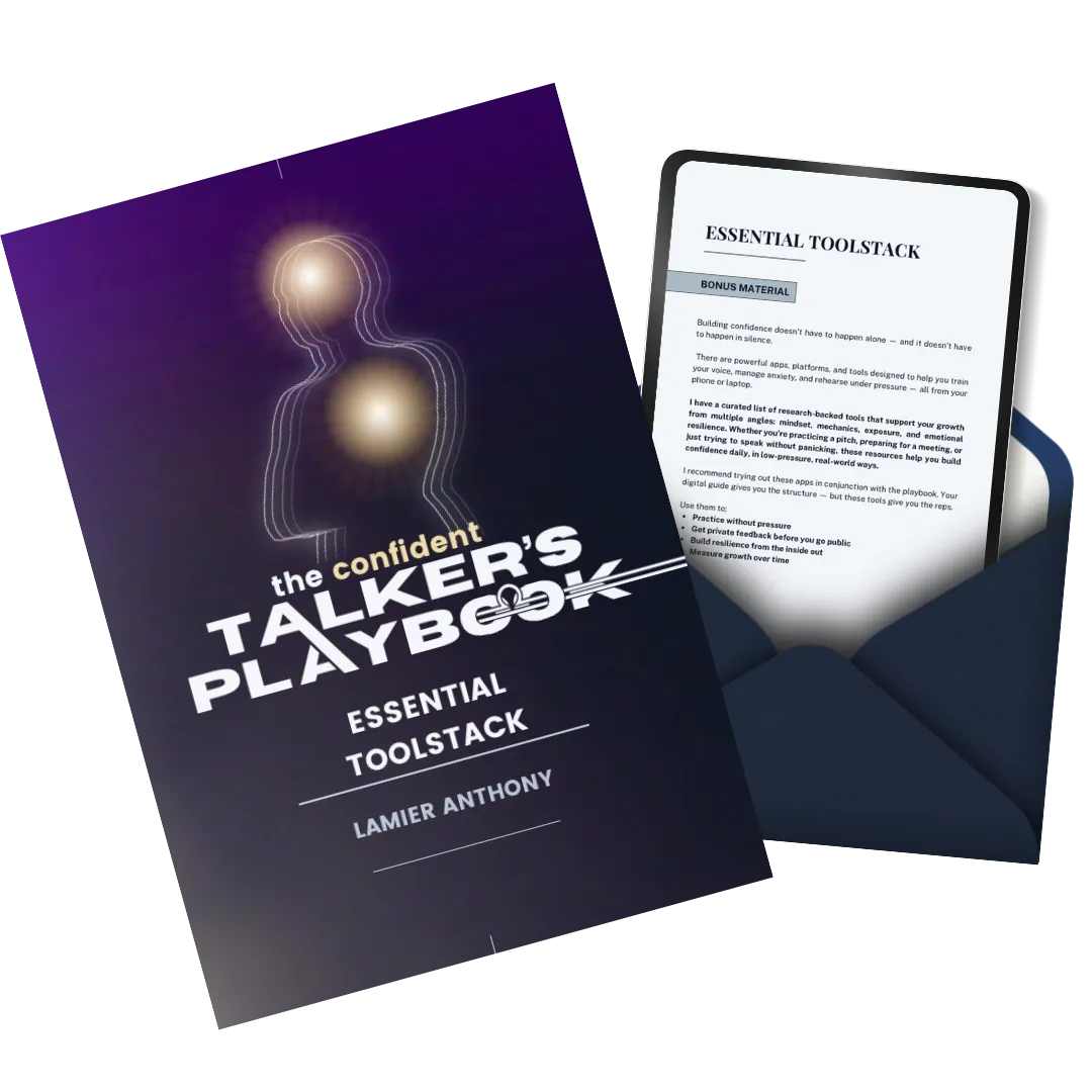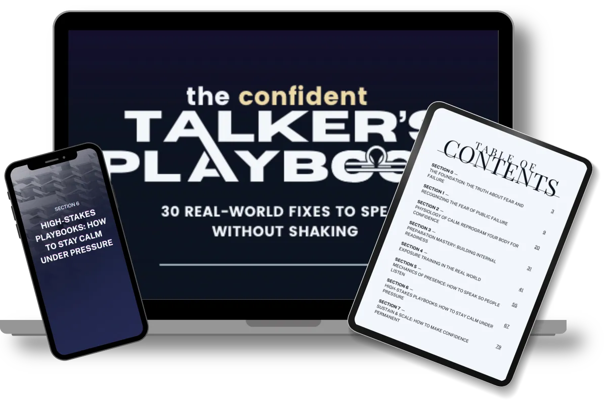 The Confident Talker's Playbook is a complete system with fast-action fixes, science-backed mindset tools, and real-world strategies to help anxious speakers calm their nerves, speak with clarity, and stay grounded under pressure.