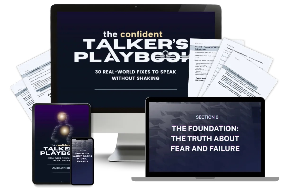 That’s exactly why this Playbook exists. It’s not a bunch of recycled tips or “just breathe” advice. It was built by someone who’s been through real speaking fear—and cracked what actually works when your voice shakes, your mind blanks, and your body goes into panic mode.